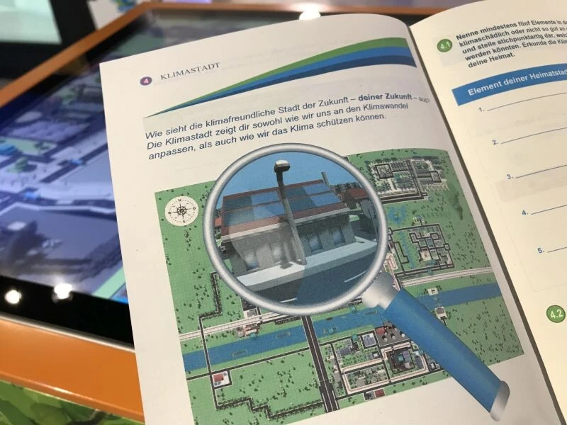Das KLIMA QUIZ führt die Schülerinnen und Schüler in kleinen Teams selbständig an ausgewählte Stationen der Innenausstellung. Klimarelevantes Wissen in allen Themenbereichen wird vertieft und am Ende werden die Ergebnisse gemeinsam ausgewertet.