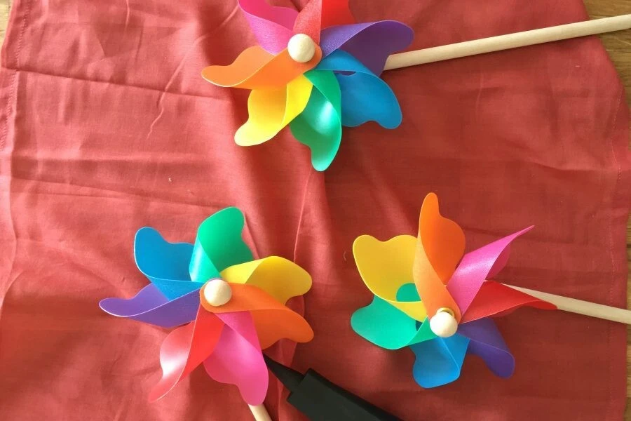 Schüler*innen lernen erneuerbare und fossile Energien kennen und bauen einen windbetriebenen Aufzug.